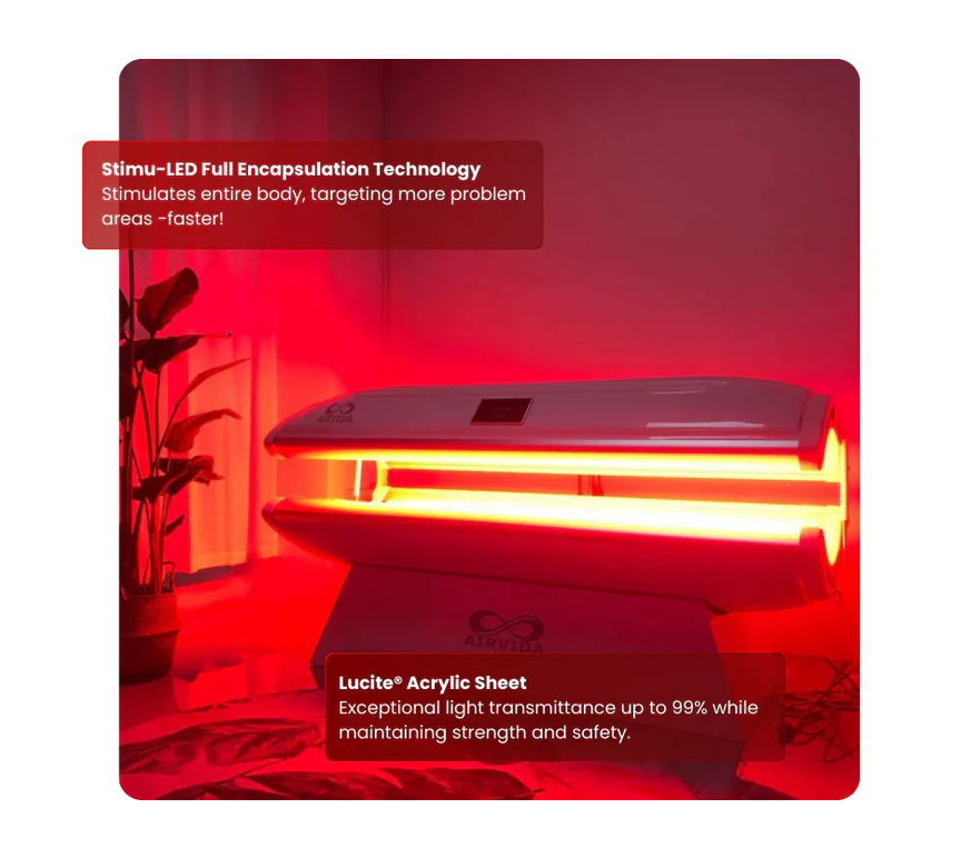 Transform your health with the Airvida Aura, the cutting-edge red light therapy bed designed for optimal healing and rejuvenation.