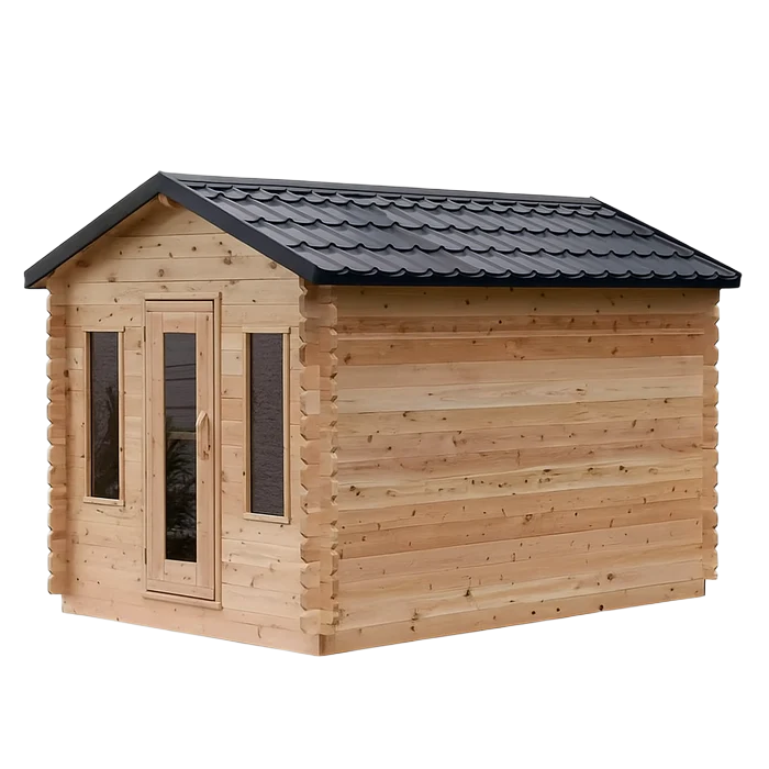The Georgian Cabin Sauna with Changeroom from the Canadian Timber Collection combines traditional craftsmanship with modern comfort, creating the perfect retreat for relaxation and wellness. Handcrafted in Canada by Leisurecraft, this sauna is built from premium Eastern White Cedar, known for its light color, natural character, and durability. Its cabin-style design blends seamlessly with cottages, backyards, or homes, while the included changeroom adds convenience and privacy. The sturdy metal shingle roof ensures your sauna stays dry and protected in all weather conditions, making it a long-lasting investment in your outdoor space.