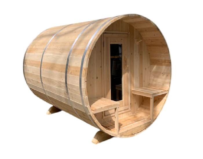 With a cubic size of 285 ft³ (8m³), this sauna comfortably accommodates 3 to 4 people. Its clean barrel-shaped design fits naturally into outdoor settings, while the use of Eastern White Cedar provides both strength and aesthetic appeal. The sauna is equipped for use with an electric heater and comes from the trusted Canadian Timber Collection by Dundalk LeisureCraft.
