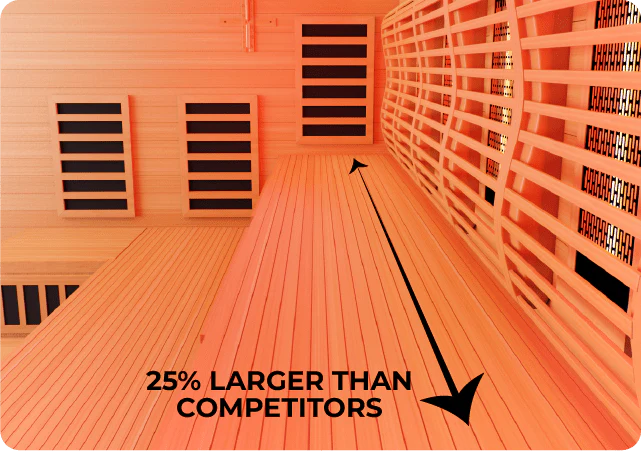 Many other sauna companies have decided what comfort means in a sauna, but we believe that standard was set too low for our customers. Therefore, we've expanded the interior space by an extra 25% in our saunas, ensuring that you can truly lounge in comfort during your daily session.